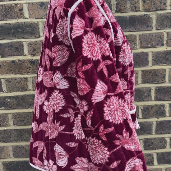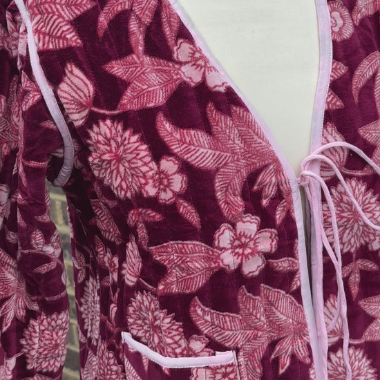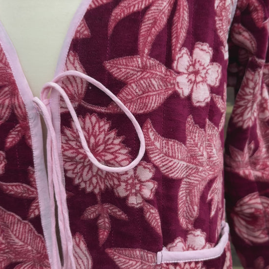 Burgundy velvet jacket tie front