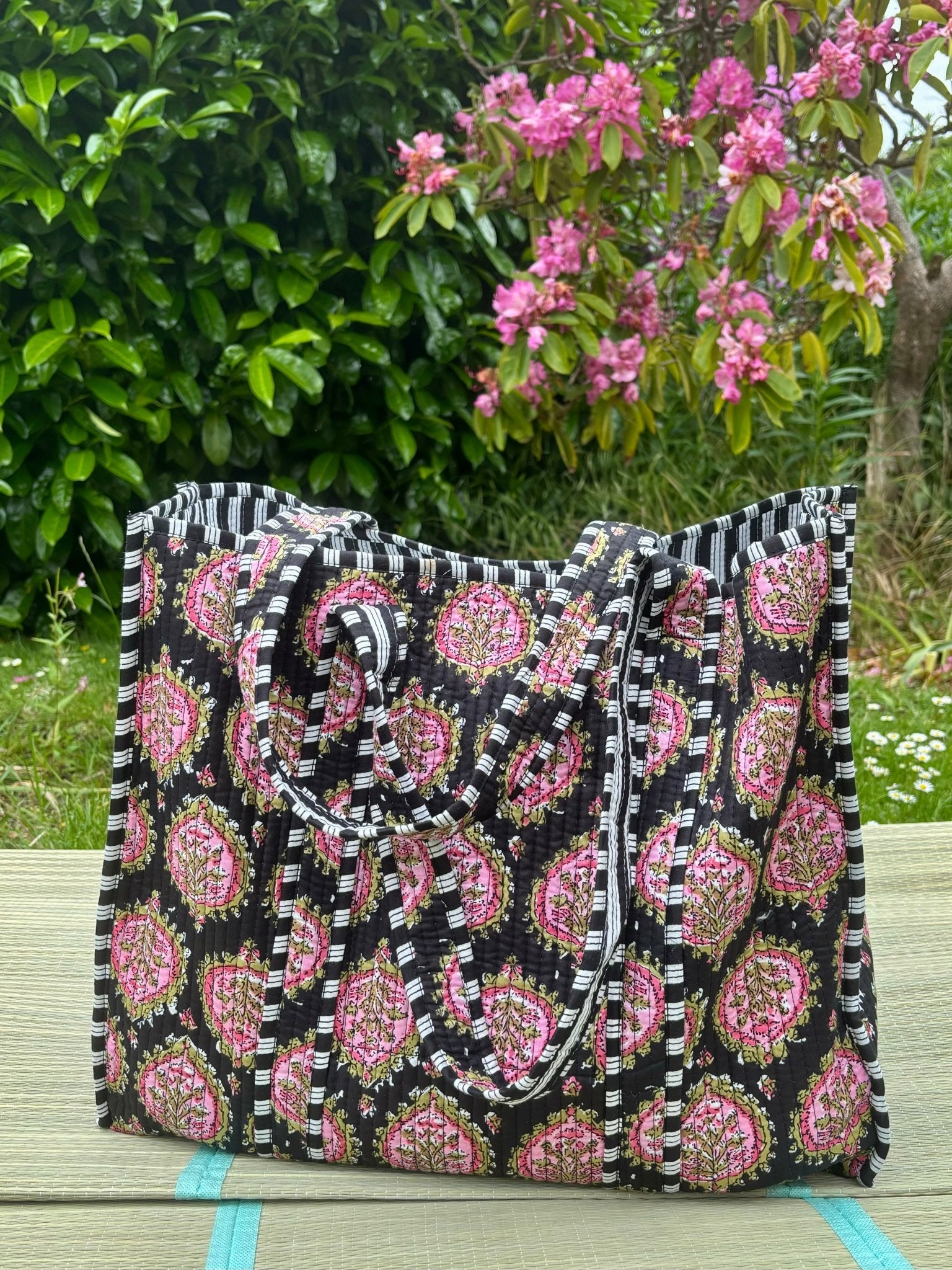 Quilted bag perfect for the beach or use as a tote. We like to call them the MdB Neverfull!